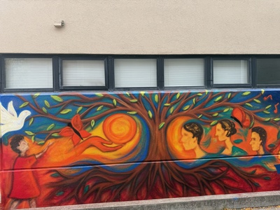 The Roots of Generosity mural, designed and created in partnership with Ithaca Murals and local muralist Hugo Medina, is the Community Foundation’s gift to everyone on the occasion of its 25th anniversary. This mural celebrates the spirit of community and the power of generosity, honoring a vision where everyone has resource and opportunity to shape their own future. The mural uplifts shared responsibility—recognizing the importance of both giving and receiving, and the deep care that comes from supporting one another. The mural captures the imagination of kids who pass by each day to the preschool next door while inspiring adults with a message of collective care and possibility.